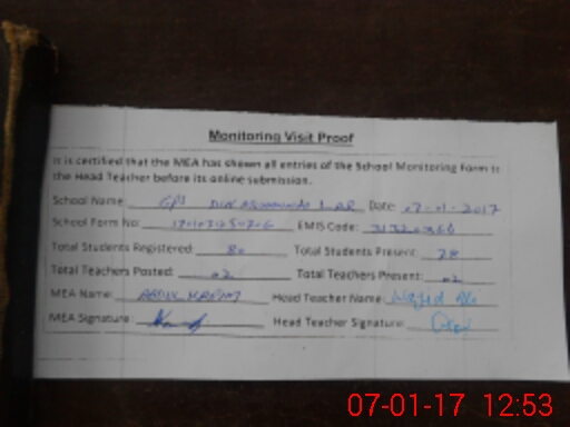 | Certified that this School was Inspected by the Undersigned MEA/DMO Today and the Information Stated Above is as Per Record. | |||||