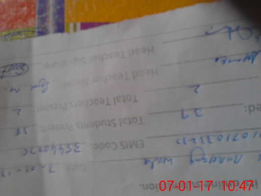 | Attendance Register | Head Teacher | MEA with School | Visit Proof |