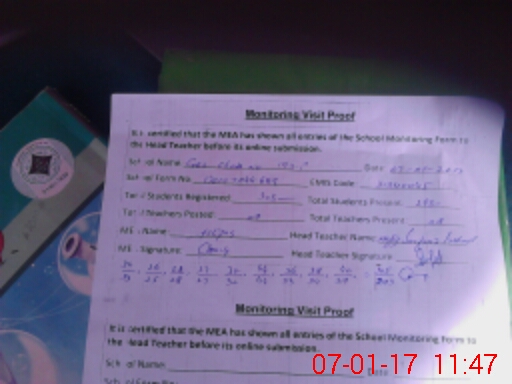 | Attendance Register | Head Teacher | MEA with School | Visit Proof |