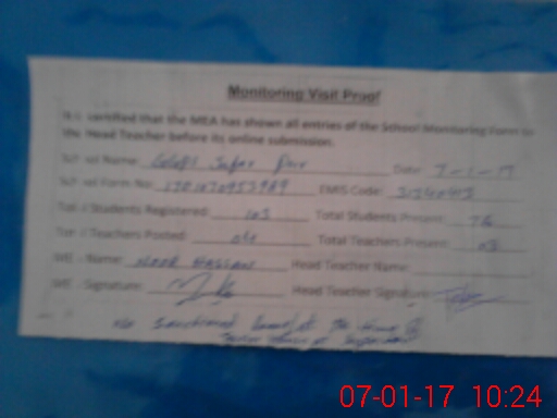 | Certified that this School was Inspected by the Undersigned MEA/DMO Today and the Information Stated Above is as Per Record. | |||||