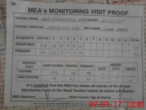 | Certified that this School was Inspected by the Undersigned MEA/DMO Today and the Information Stated Above is as Per Record. | |||||