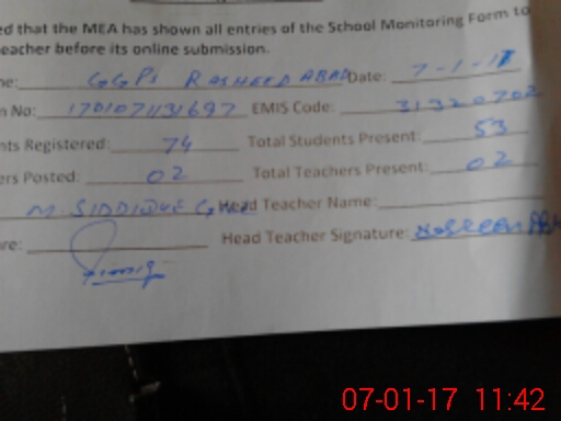 | EMIS Code: 31320702 | Name of School: GGPS RASHID ABAD | |||