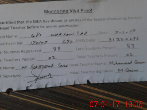 | EMIS Code: 31320294 | Name of School: GPS WARYAM LAR | |||