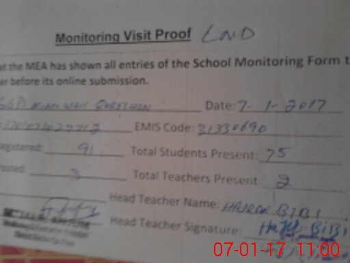 | Attendance Register | Head Teacher | MEA with School | Visit Proof |