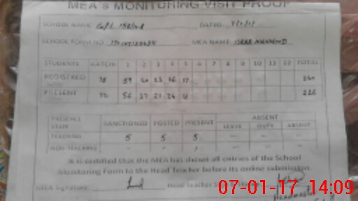 | Certified that this School was Inspected by the Undersigned MEA/DMO Today and the Information Stated Above is as Per Record. | |||||