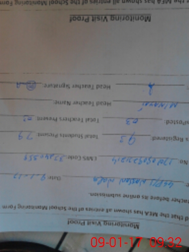| Attendance Register | Head Teacher | MEA with School | Visit Proof |