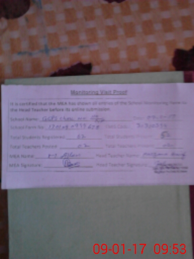 | Remarks (Use Separate Page if Required): No administration visit found during the month of Dec 2016 It is intimated the new building as upgraded middle school is under construction at initial stage | |||||