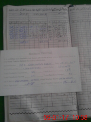 | Total no. of Classrooms: 6 No. of Classrooms Used for Teaching: 6 No. of Classrooms Storing Old Furniture, FTBs, etc: 0Comments if Any: NSB AND FTF RECORD NOT AVAILABLE IN THE SCHOOL Mali ZEESHAN TARIQ AN ABSENT AND SURRENDER BUT NOT ANY LETTER AVAILABLE IN THE SCHOOL |