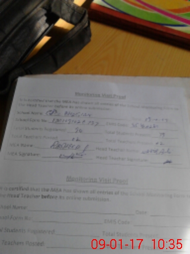 | Attendance Register | Head Teacher | MEA with School | Visit Proof |