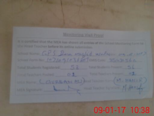 | EMIS Code: 35430560 | Name of School: GPS DERA MASJID WALA | |||