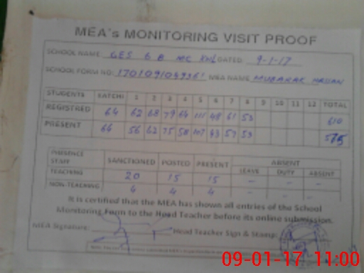 | Attendance Register | Head Teacher | MEA with School | Visit Proof |