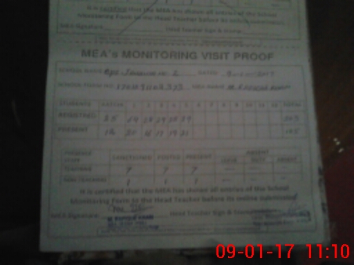 | Attendance Register | Head Teacher | MEA with School | Visit Proof |