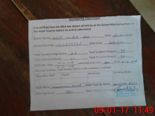 | Certified that this School was Inspected by the Undersigned MEA/DMO Today and the Information Stated Above is as Per Record. | |||||