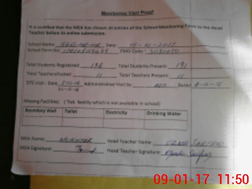 | Certified that this School was Inspected by the Undersigned MEA/DMO Today and the Information Stated Above is as Per Record. | |||||