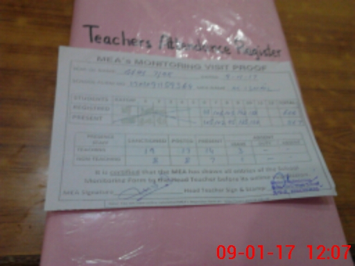 | Attendance Register | Head Teacher | MEA with School | Visit Proof |
