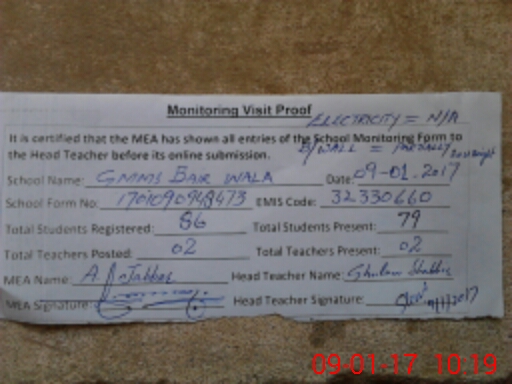 | EMIS Code: 32330660 | Name of School: GPS BAIR WALA | |||