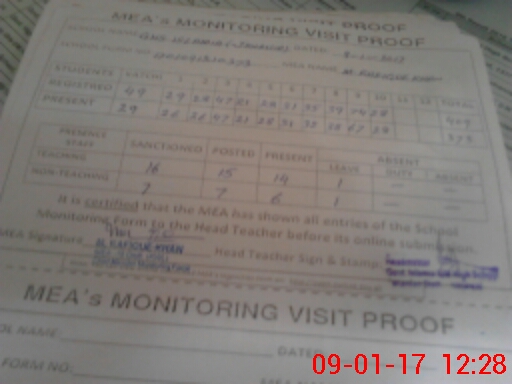 | Attendance Register | Head Teacher | MEA with School | Visit Proof |