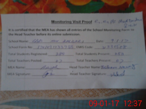 | Certified that this School was Inspected by the Undersigned MEA/DMO Today and the Information Stated Above is as Per Record. | |||||