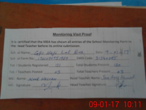 | EMIS Code: 31340295 | Name of School: GPS HAJI LAL BUX | |||