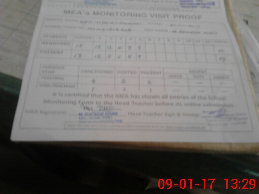 | Attendance Register | Head Teacher | MEA with School | Visit Proof |