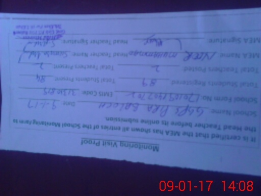 | Attendance Register | Head Teacher | MEA with School | Visit Proof |