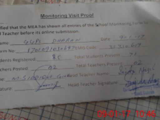 | Certified that this School was Inspected by the Undersigned MEA/DMO Today and the Information Stated Above is as Per Record. | |||||