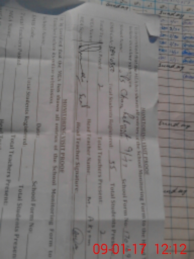 | Attendance Register | Head Teacher | MEA with School | Visit Proof |