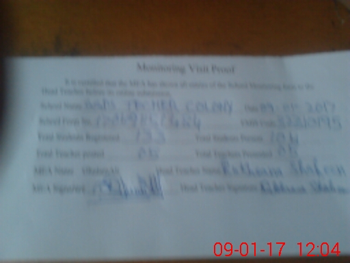 | Certified that this School was Inspected by the Undersigned MEA/DMO Today and the Information Stated Above is as Per Record. | |||||