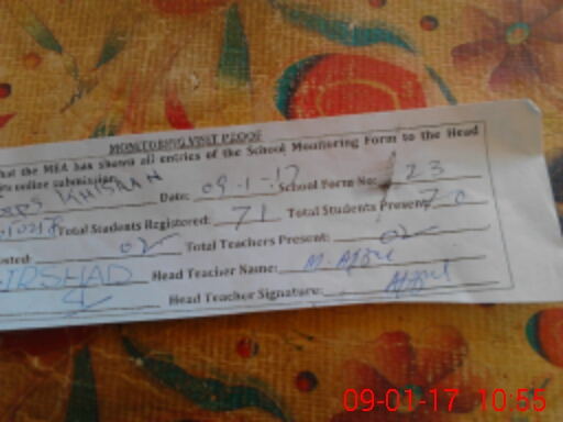 | Attendance Register | Head Teacher | MEA with School | Visit Proof |