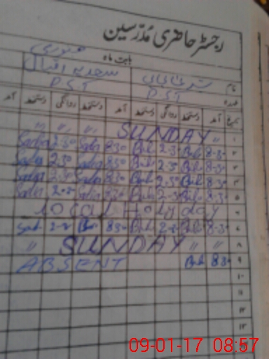 | CNIC | Full Name | Designation | R/C | Absence During Last Calender Month |