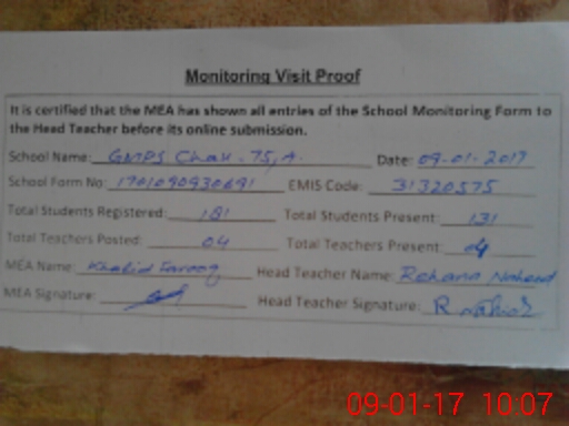 | EMIS Code: 31320575 | Name of School: GMPS CHAK 75/A | |||