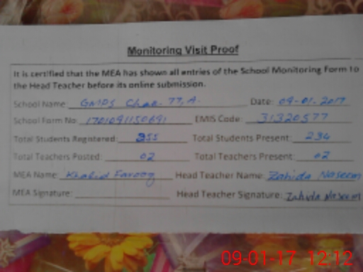 | EMIS Code: 31320577 | Name of School: GMPS CHAK 77/A | |||