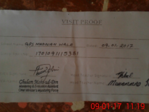 | EMIS Code: 38230503 | Name of School: GPS MADNIAN WALA | |||