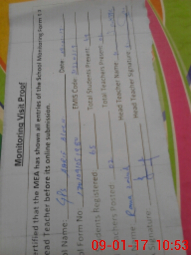 | Monitoring Date: 09-01-2017 | Start Time: 09-01-2017 10:32 AM | End Time: 09-01-2017 10:55 AM | Name of MEA: Mu**** Za**** -KP**** | |