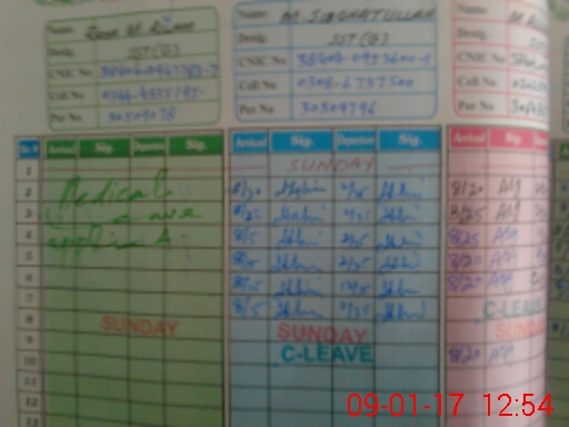 | CNIC | Full Name | Designation | R/C | Absence During Last Calender Month |