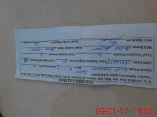| Attendance Register | Head Teacher | MEA with School | Visit Proof |