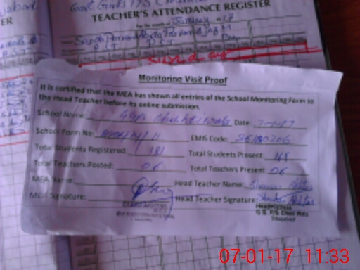 | Attendance Register | Head Teacher | MEA with School | Visit Proof |