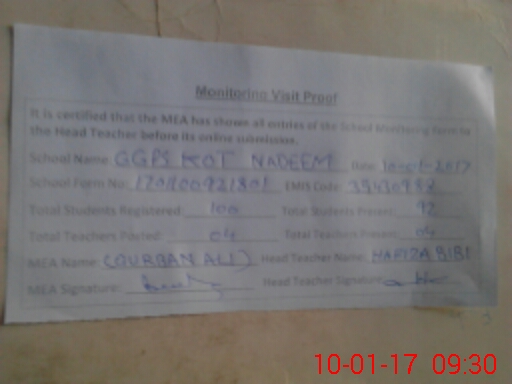 | EMIS Code: 35430988 | Name of School: GGPS KOT NADEEM | |||