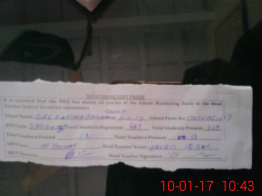 | Attendance Register | Head Teacher | MEA with School | Visit Proof |