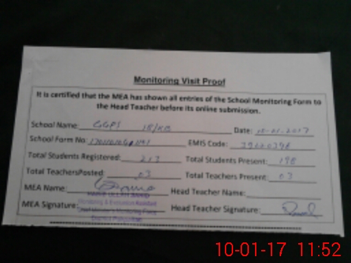| EMIS Code: 39220346 | Name of School: GGPS 18 KB | |||