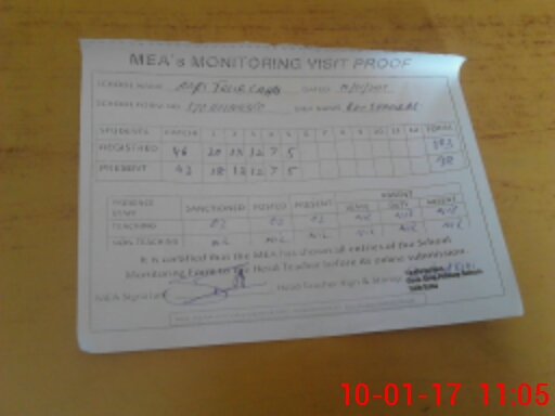 | Attendance Register | Head Teacher | MEA with School | Visit Proof |