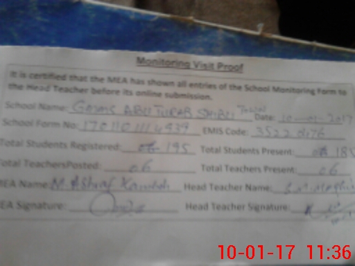| EMIS Code: 35220476 | Name of School: GMMS ABU TARB SHABLI TOWN BUND ROAD | |||