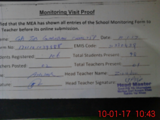 | EMIS Code: 31330439 | Name of School: GPS TIB GHARIBAN CHAK 75/P | |||