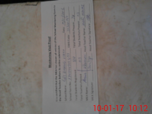 | Attendance Register | Head Teacher | MEA with School | Visit Proof |