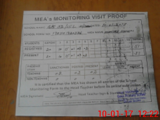 | Attendance Register | Head Teacher | MEA with School | Visit Proof |