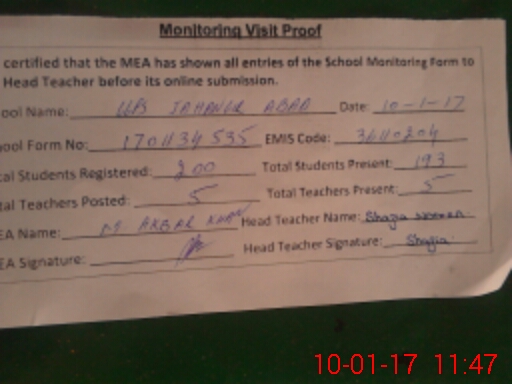 | EMIS Code: 36110204 | Name of School: GGPS JAHANGIR ABAD MULTAN | |||