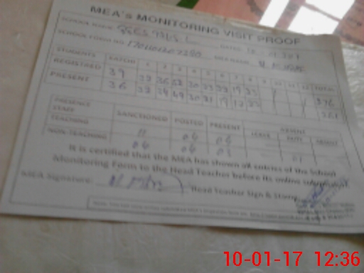 | Attendance Register | Head Teacher | MEA with School | Visit Proof |