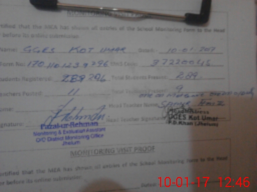 | EMIS Code: 37220045 | Name of School: GGES KOT UMMAR | |||