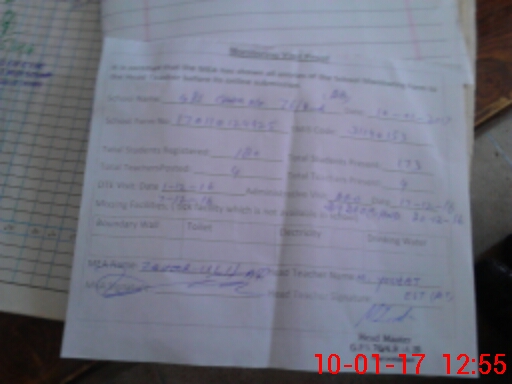 | Attendance Register | Head Teacher | MEA with School | Visit Proof |