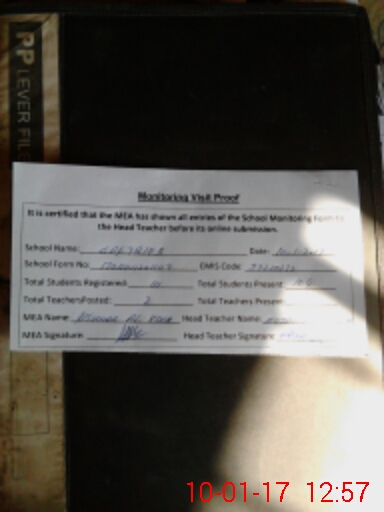 | Attendance Register | Head Teacher | MEA with School | Visit Proof |